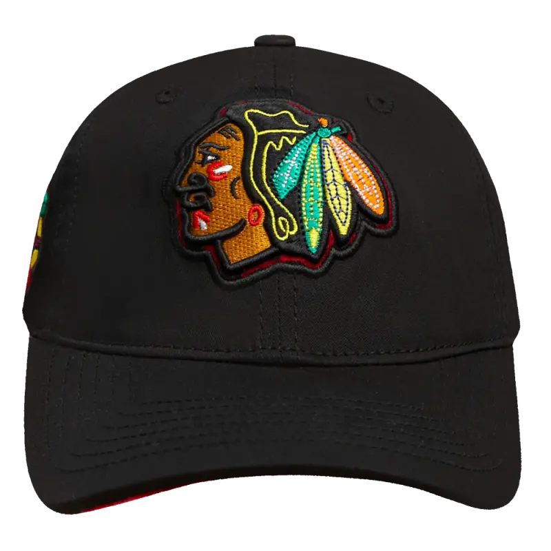 NHL CHICAGO BLACKHAWKS ANIMAL PRINT DAD HAT (BLACK)
