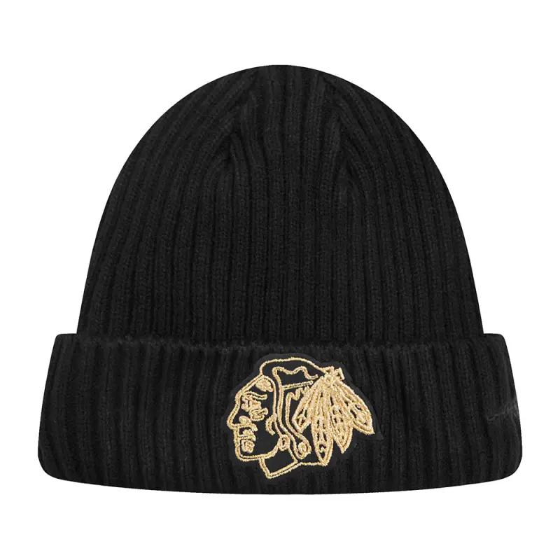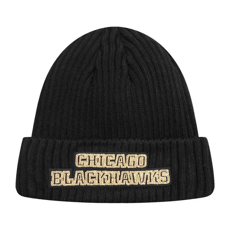 NHL CHICAGO BLACKHAWKS BLACK \u0026 GOLD BEANIE (BLACK)