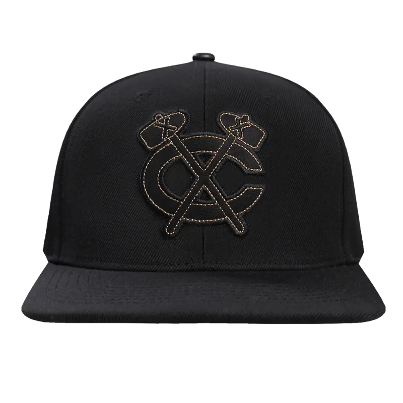 NHL CHICAGO BLACKHAWKS BLACK \u0026 GOLD WOOL SNAPBACK HAT (BLACK)