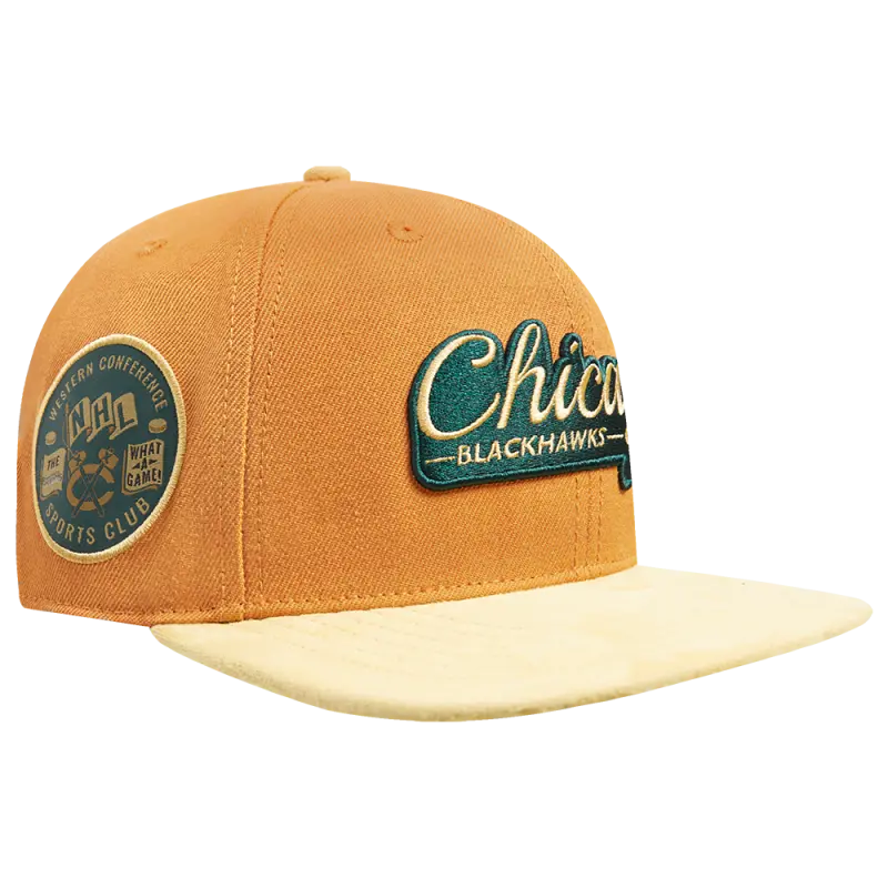 NHL CHICAGO BLACKHAWKS BUTTER SUEDE SIDE PATCH STRAPBACK HAT (BURNT ORANGE\/SUEDE)