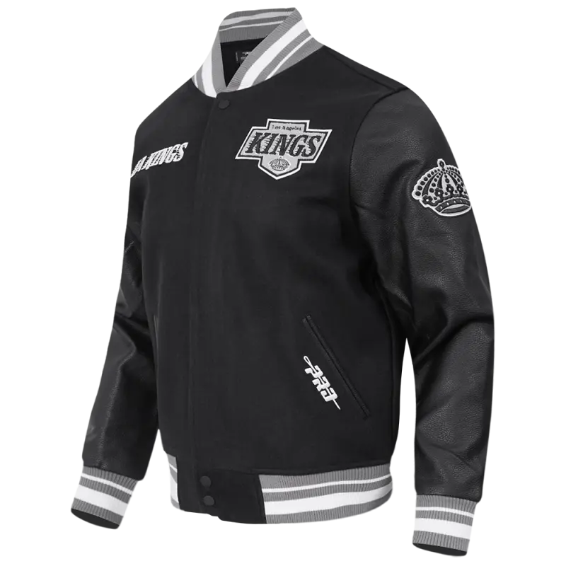 NHL LOS ANGELES KINGS MASHUP MEN’S RIB WOOL VARSITY JACKET (BLACK\/GRAY)