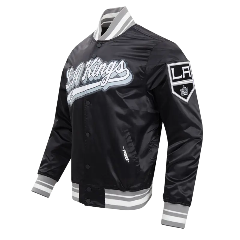NHL LOS ANGELES KINGS RETRO CLASSIC MEN’S RIB SATIN JACKET (BLACK\/GRAY)