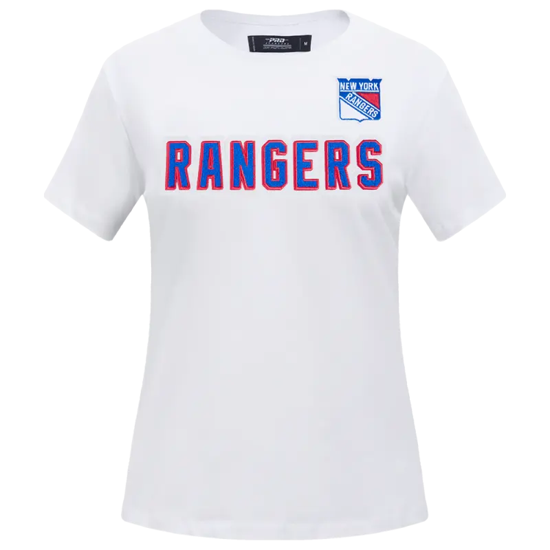 NHL NEW YORK RANGERS CLASSIC SHORT SLEEVE WOMEN’S SINGLE JERSEY SLIM FIT TEE (WHITE)