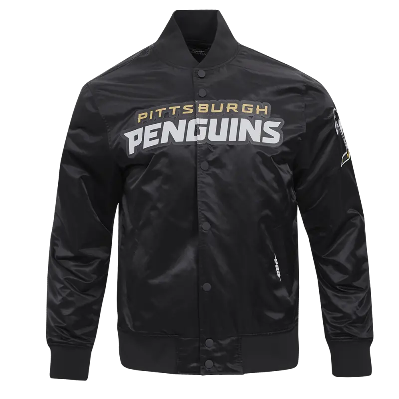 NHL PITTSBURGH PENGUINS CLASSIC MEN’S SATIN JACKET (BLACK)