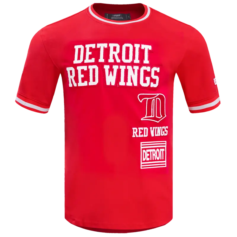 NHL DETROIT RED WINGS CLASSIC CHENILLE MEN’S DOUBLE KNIT TEE (RED\/BLACK)