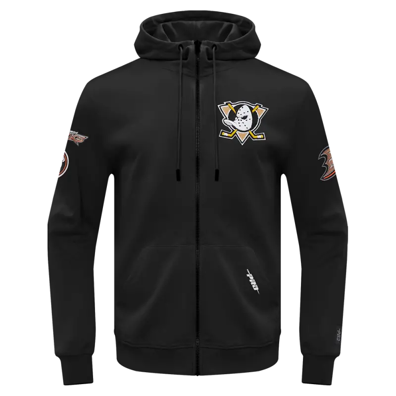 NHL ANAHEIM DUCKS CLASSIC MEN’S CHENILLE DK FZ PO HOODIE (BLACK)