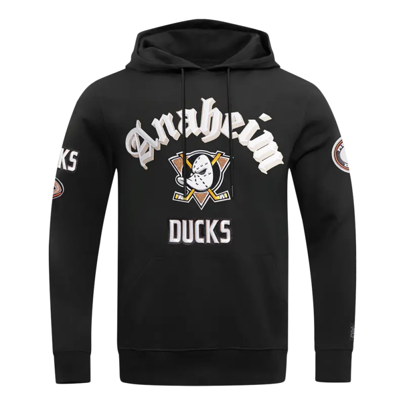 NHL ANAHEIM DUCKS OLD ENGLISH MEN’S PO HOODIE (BLACK)
