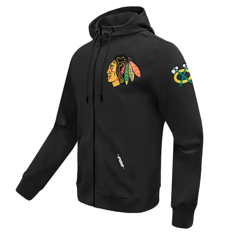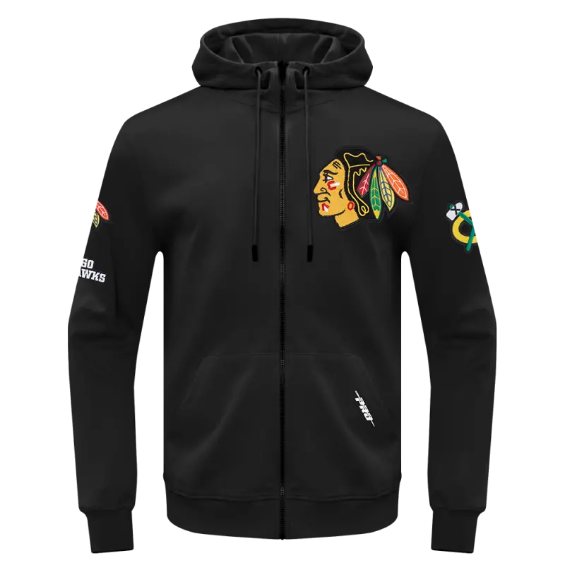 NHL CHICAGO BLACKHAWKS CLASSIC CHENILLE MEN’S FZ PO HOODIE (BLACK)