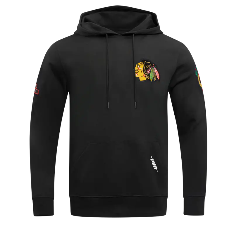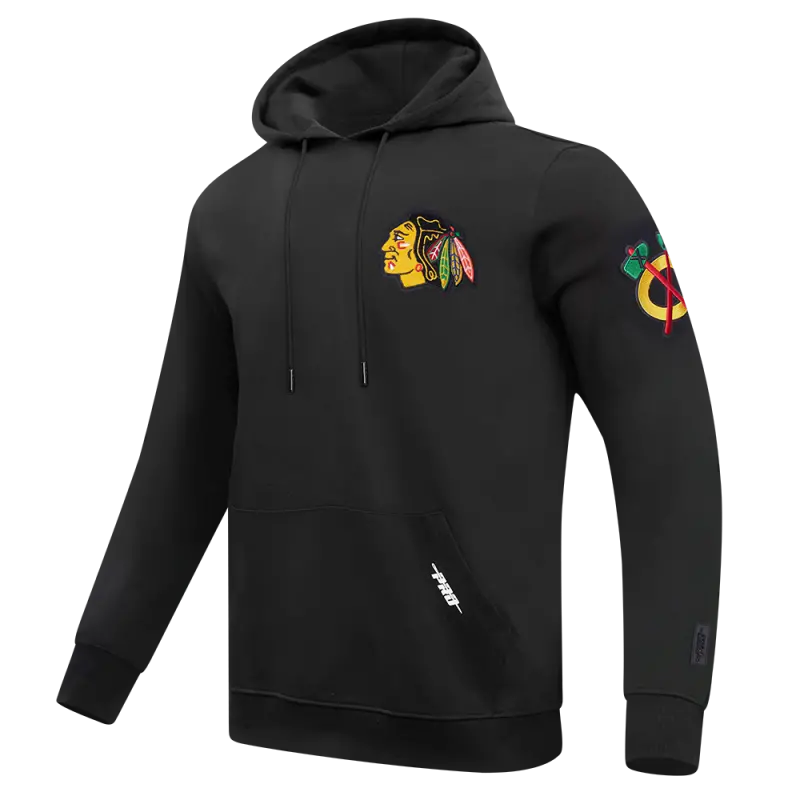 NHL CHICAGO BLACKHAWKS CLASSIC CHENILLE MEN’S PO HOODIE (BLACK)