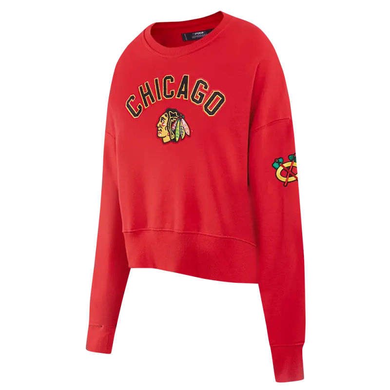 NHL CHICAGO BLACKHAWKS CLASSIC WOMEN’S FLC CREWNECK (RED)
