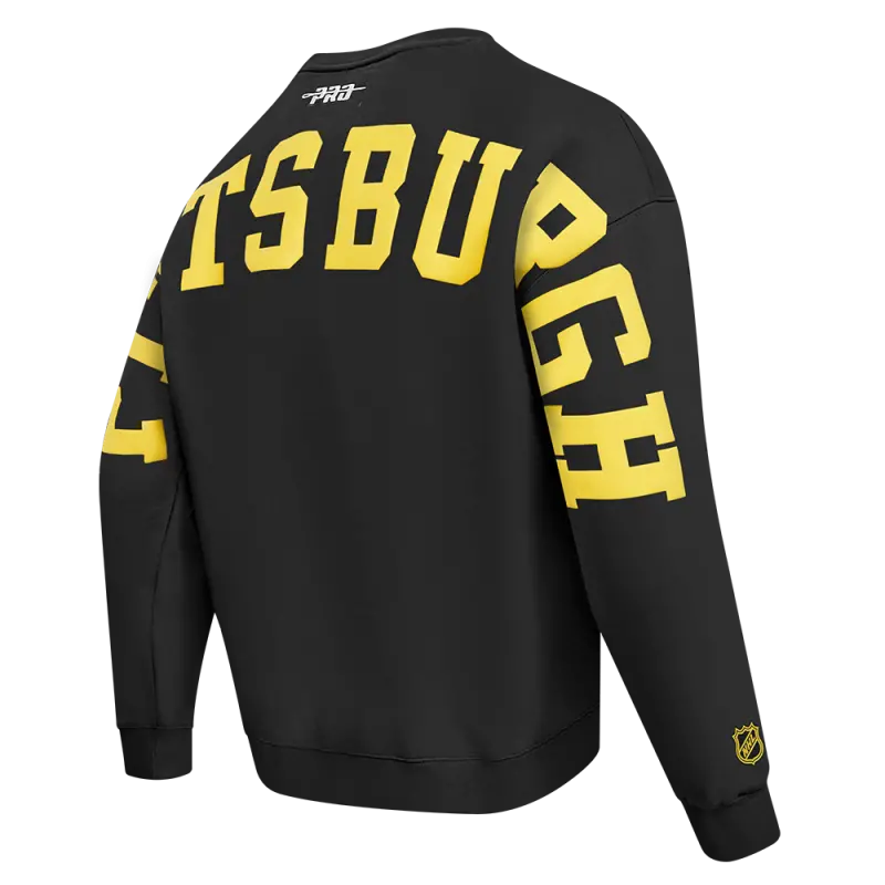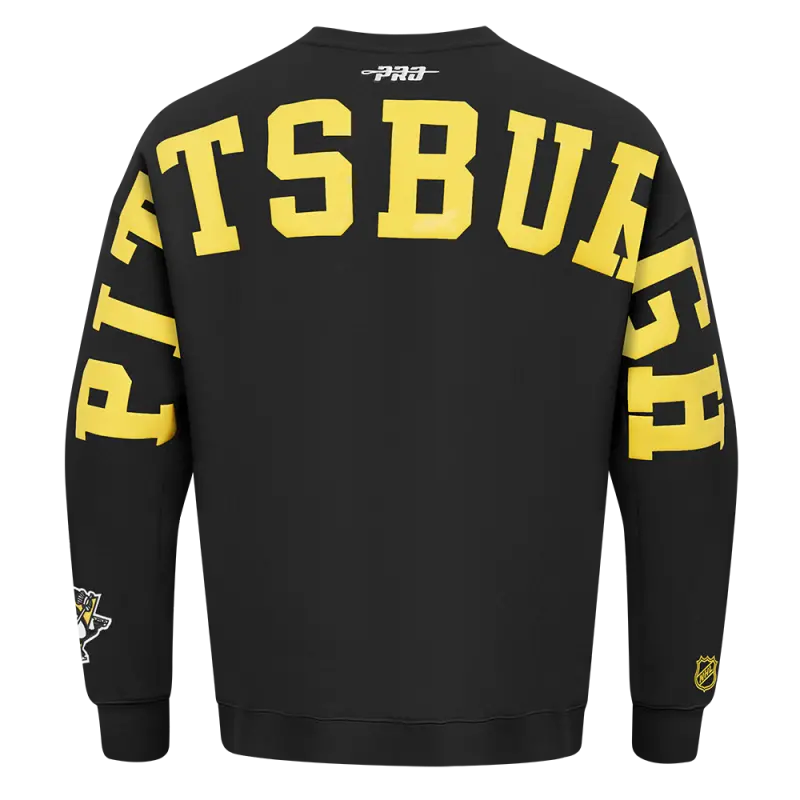 NHL PITTSBURGH PENGUINS WINGSPAN MEN’S DROP SHOULDER FLEECE CREWNECK (BLACK)