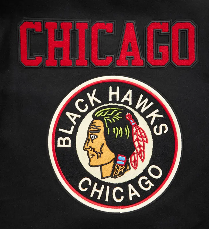 Home / Shop / Chicago Blackhawks / NHL CHICAGO BLACKHAWKS RETRO CLASSIC MEN’S RIB WOOL VARSITY JACKET (BLACK\/RED\/BLACK)