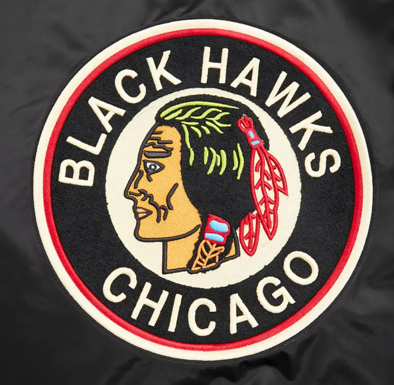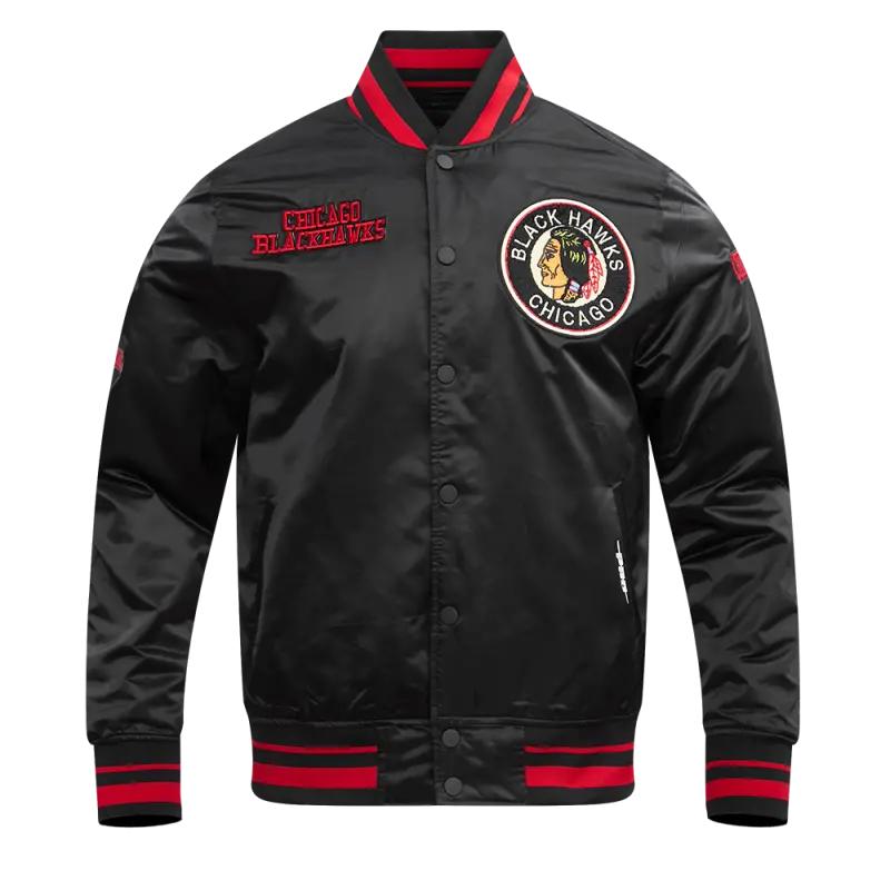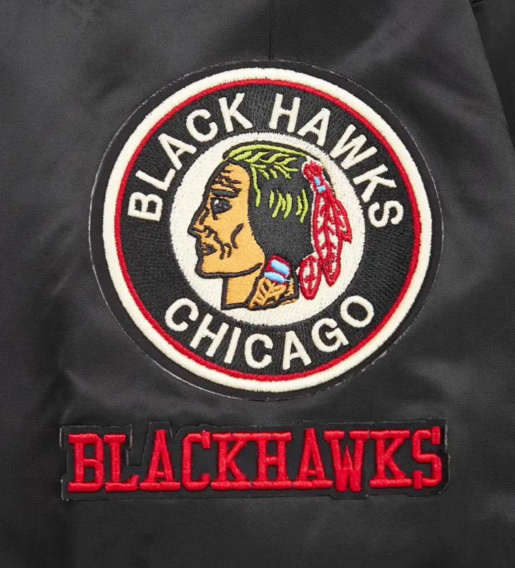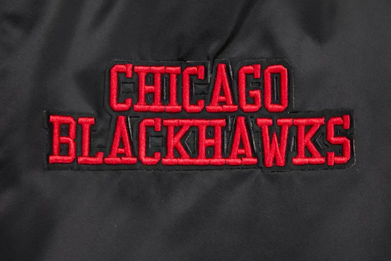 NHL CHICAGO BLACKHAWKS RETRO CLASSIC RIB SATIN JACKET (BLACK\/RED\/BLACK)