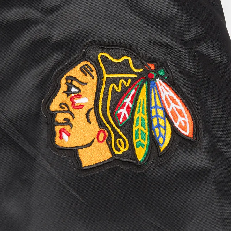 Home / Shop / Chicago Blackhawks / NHL CHICAGO BLACKHAWKS SCRIPT TAIL WOMEN’S SATIN JACKET (BLACK\/RED\/BLACK)