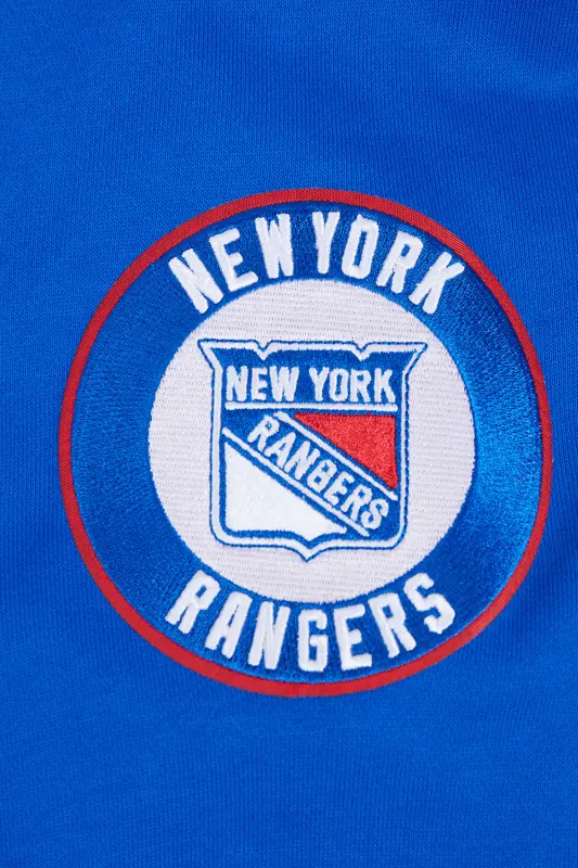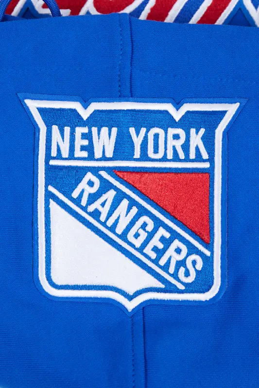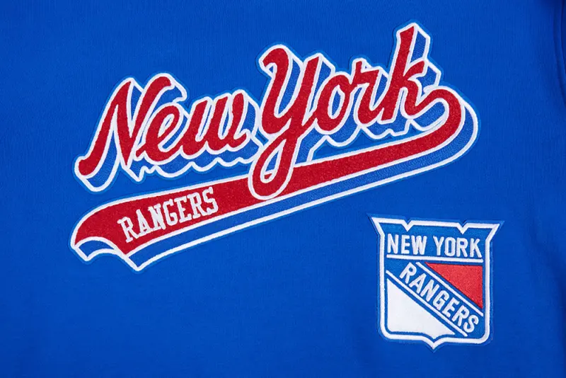 NHL NEW YORK RANGERS SCRIPT TAIL MEN’S RIB FLEECE PULLOVER HOODIE (ROYAL BLUE\/RED)